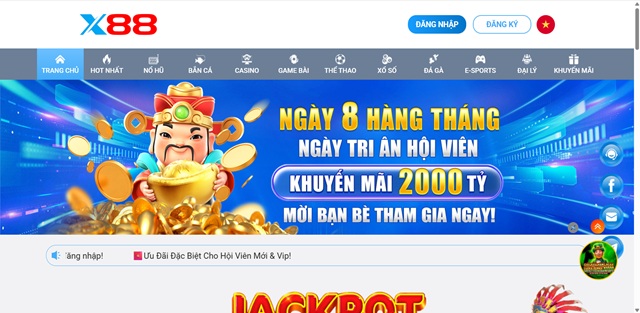 X88.Com | X8877 – Trang cá cược trực tuyến uy tín số 1 Việt Nam. Nạp rút nhanh không phí, kèo thể thao đẳng cấp, casino, nổ hũ, bắn cá,… khuyến mãi cực khủng